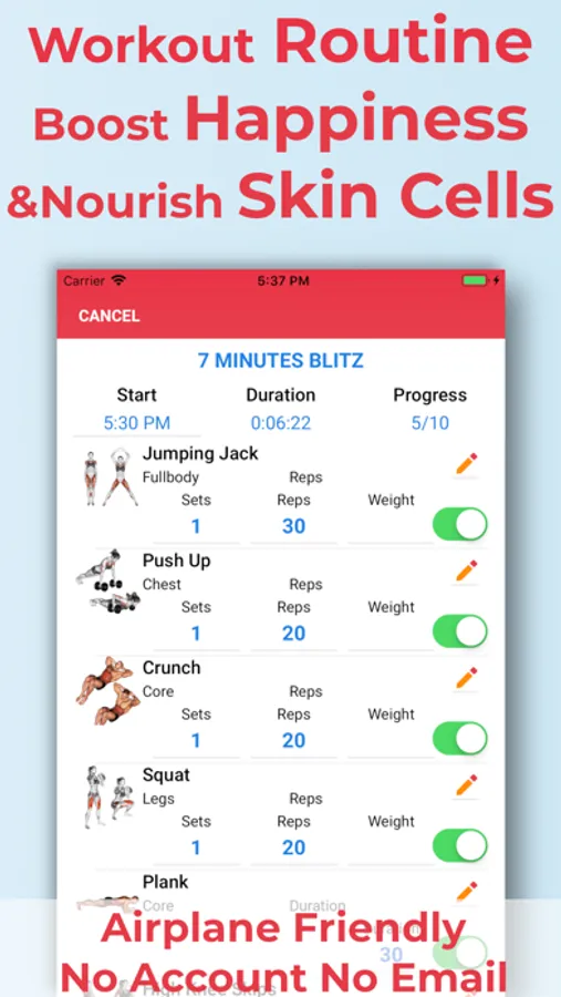 5. One page workout execution UI to track real-time progress. Workout records can be saved to Apple Health.