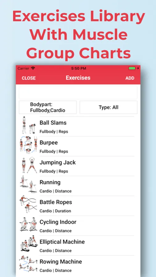 2. Exercise library with 90+ default exercises, which are categorized by body-part and exercise type, to help you customize your own workout plan. You can also add unlimited number of customized exercise to this exercise library.