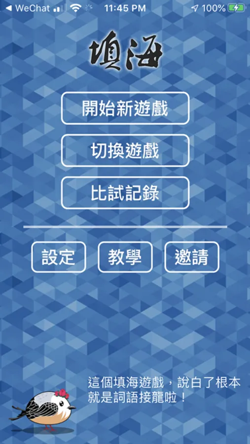 《填海》是最輕鬆悠閒的文字遊戲,可以在等人的時候,如廁的時候,無聊的時候玩一玩,毫無壓力,透過遊戲互動更可跟朋友聯繫感情。活用詞語也能讓自己的語言能力得到提升,是個簡單卻又刺激的益智遊戲。