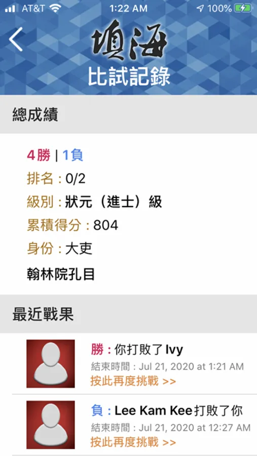 玩家按照成績會被分配到四大級別,成績最優秀者為「狀元進士級」,其次為「會元貢士級」,再次者為「解元舉人級」,最後是「寒酸秀才級」。四大級別以對手為比較,用特定的方程式分配,隨著玩家的成績高低起跌,玩家也會被安排到相應的級別,可以晉級也可以降級。