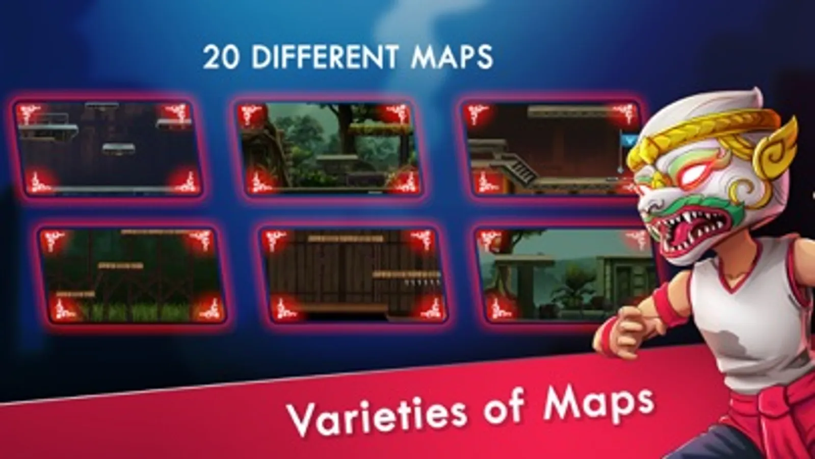 It’s a fair play game, no level or costume advantage. You join the online fight, with same damage point, and make sure you pick up your nearby weapon first. Jump kick, punch with iron fist, flying knee, you name it. Earn enough money, buy chest to unlock new outfit for a wonderful look.