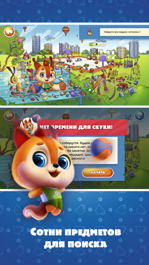 Ты считаешь себя самым внимательным? Твое умение пригодится в поиске предметов! Помоги участникам Команды Плюш найти потерянные предметы, познакомься с персонажами, погрузись в атмосферу спорта!