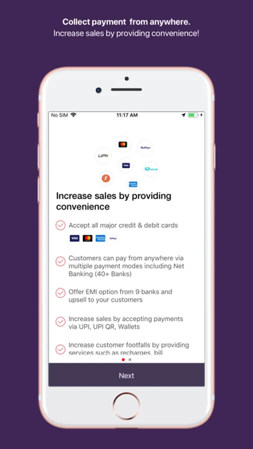 - Accept MasterCard, Visa, Amex & Rupay Credit/Debit Cards