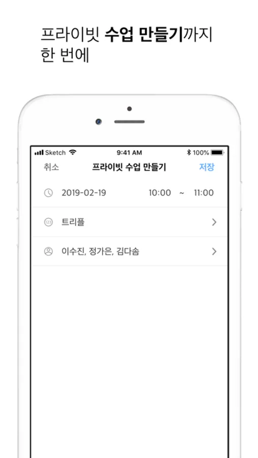 프라이빗 수업과 담당 그룹 수업 등록부터 수업 별로 예약회원 목록을 간편하게 조회할 수 있고 담당 회원의 수업 일정을 언제 어디서나 관리할 수 있다기보다 효율적으로 스케줄을 관리할 수 있습니다.
