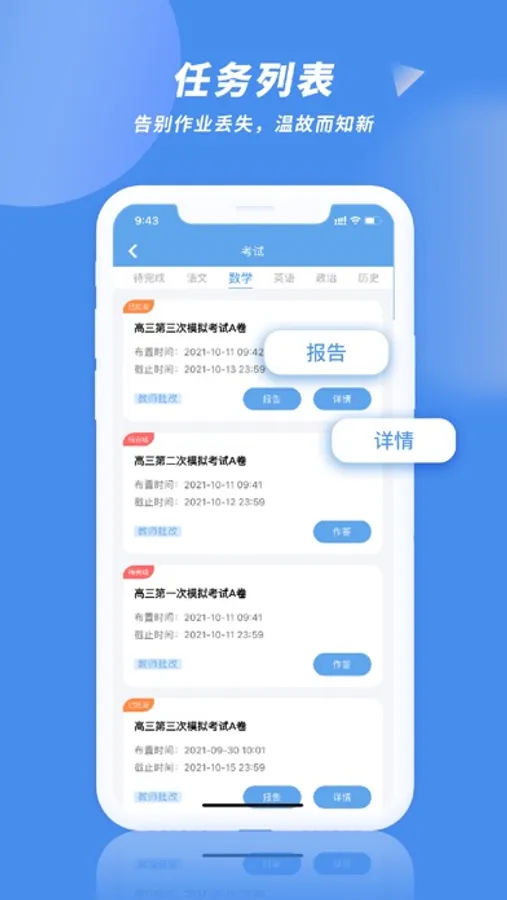 教师布置课堂或课后测验,学生进行作答,教师线上批阅,学生、家长及时获取反馈。