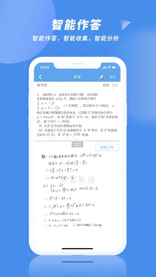 学生对老师布置的作业进行作答,主观题使用智能笔在提供的专用纸张上进行作答,终端实时采集作答数据,作答完毕提交后,老师能在Pad端或者Web端对学生作答情况进行批阅、作答笔迹查看,学生、家长及时获取反馈。