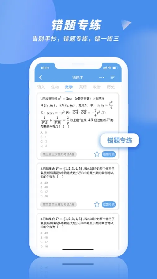 记录学生作答出错的试题,并根据学生错题推送相似题目进行练习。