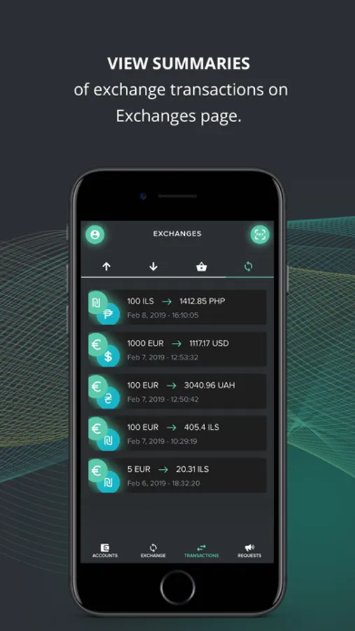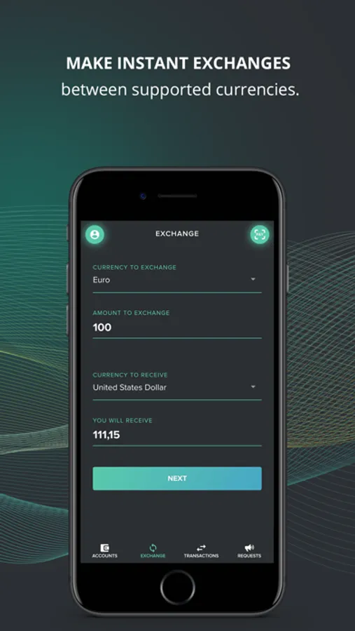 The App eliminates the need to search for third-party exchanges as Exchange Service is integrated into the solution. Make instant exchanges between multiple supported currencies at fair fees and attractive rates.
