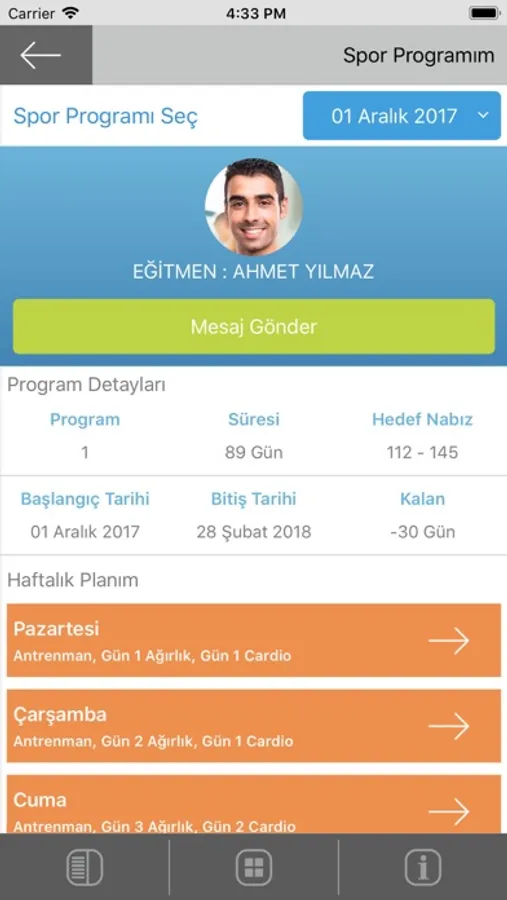 - Gym & Cardio programlarını telefonundan takip ederek, her yaptıkları hareketi “Yapıldı” olarak işaretleyebilirler. Böylece eğitmenleri onları birebir takip edebilir.