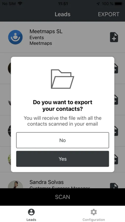 - Exporta los datos de forma fácil y directamente a tu correo, para poder guardar la base de datos de los contactos hechos durante el evento