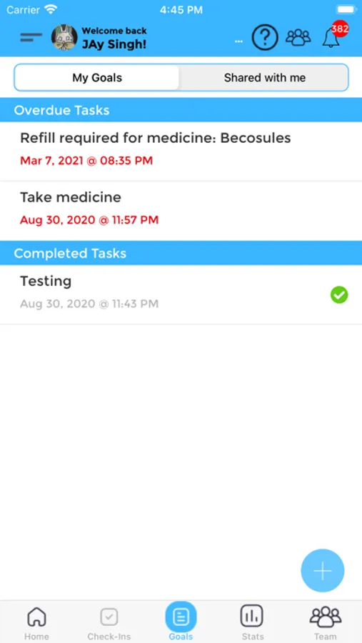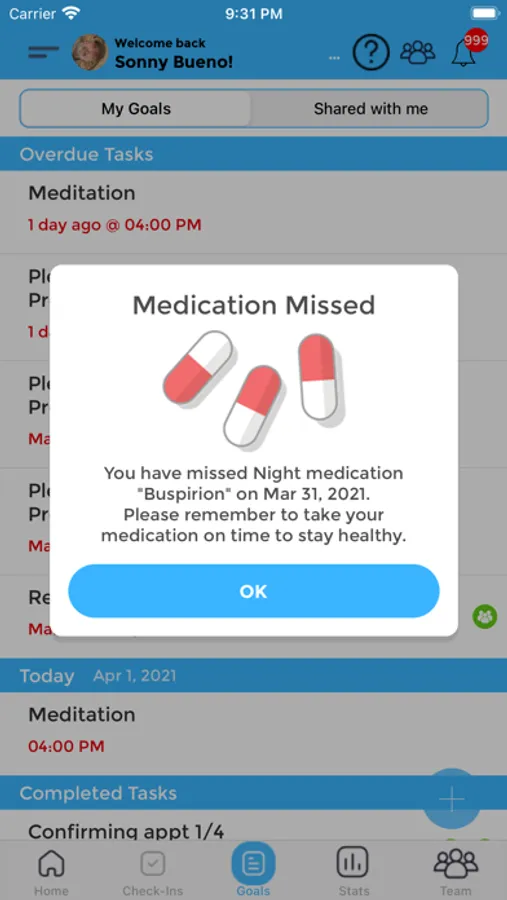 Receive periodic check-ins and let your providers know how you are doing. Ability to manage and share tasks and goals with care team members. Timely reminders, alerts and requests for action will ensure that you maintain all your goals with ease.