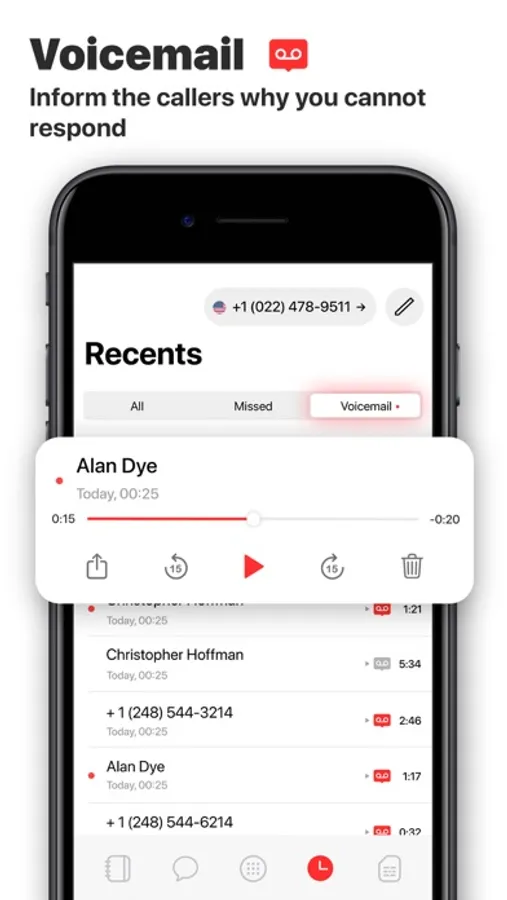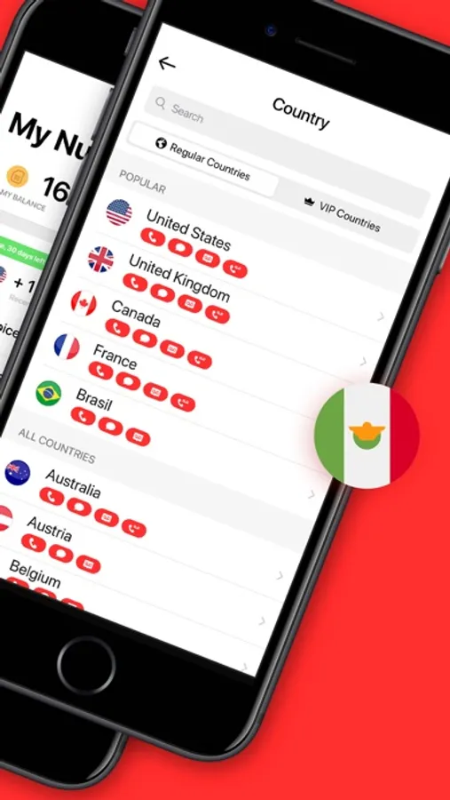 VARIOUS NUMBERS: App displays a list of 30 countries' numbers. Here are some of the most popular countries: USA, UK, Canada, Germany, France, Japan, etc. Virtual numbers are operated like real ones, no need for second SIM!