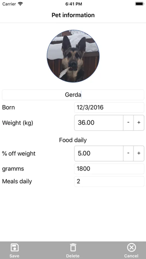 - add your pets and enter, how much you plan to feed them per meal ( in gramms or in percent of dog weight )