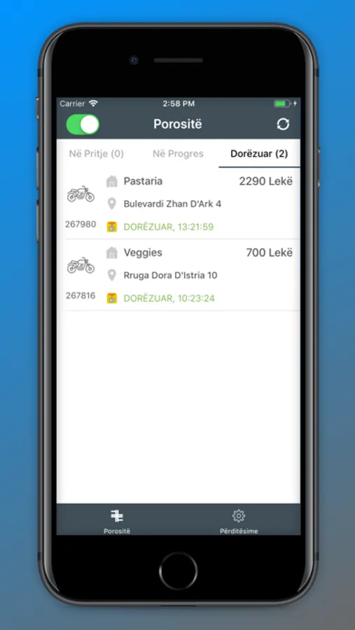Mund te kontrollosh ne cdo moment te gjitha porosite e dites dhe te shikosh LIVE Statuset e porosise :Pranuar, Derguar, Refuzuar.