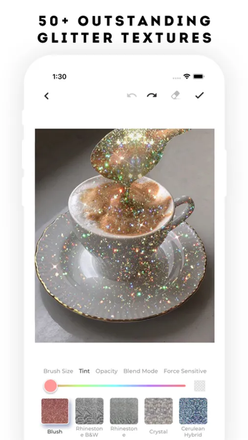 - Choose your favorite texture from Glitterr's trendy and outstanding library consisting of 45+ patterns.