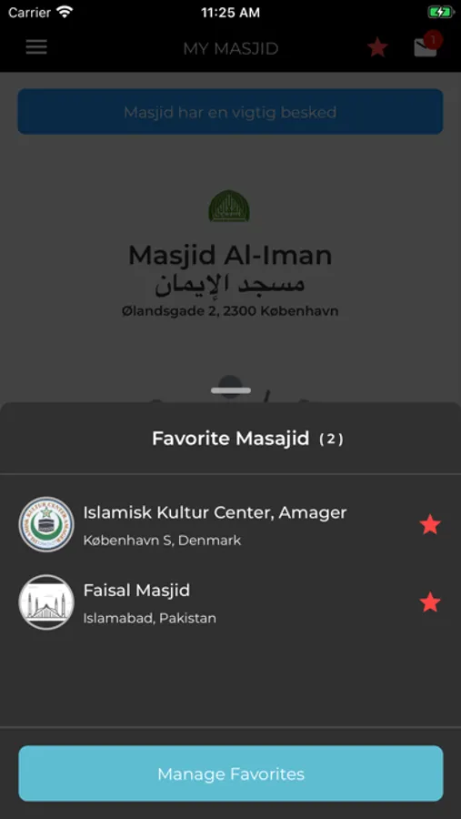 5. Switch between Masajid (favorites or via Select Masjid in Left Menu)