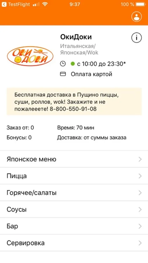 Мобильное приложения для заказа на доставку пиццы, суши, роллов, wok, салатов и других блюд, приготовленных только из свежих и качественных ингредиентов по территории г.Пущино, поселков Липицы, Б.Грызлово (аэродром), Балково.