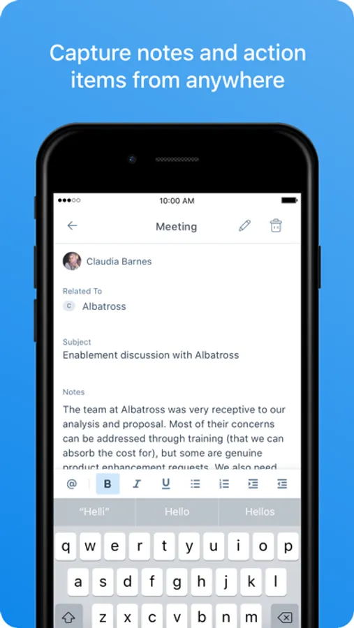 • Connect your Google or Outlook calendar for timely meeting prep and quick note-taking