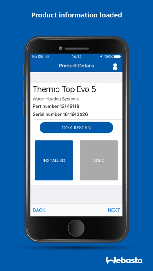 The Webasto Service App enables Webasto dealers to register a product or to access documentation by simply scanning the barcode on the box label of a product. This also works for the barcodes of vehicle specific installation kits. By scanning the barcode of a kit you can access the application documents, which contain information on how to install vehicle specific kits. There are also several product related training videos available.