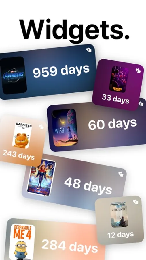 · Widget: Add a widget of your favorite upcoming film so every time you launch your iPhone, you'll see how many days are left.