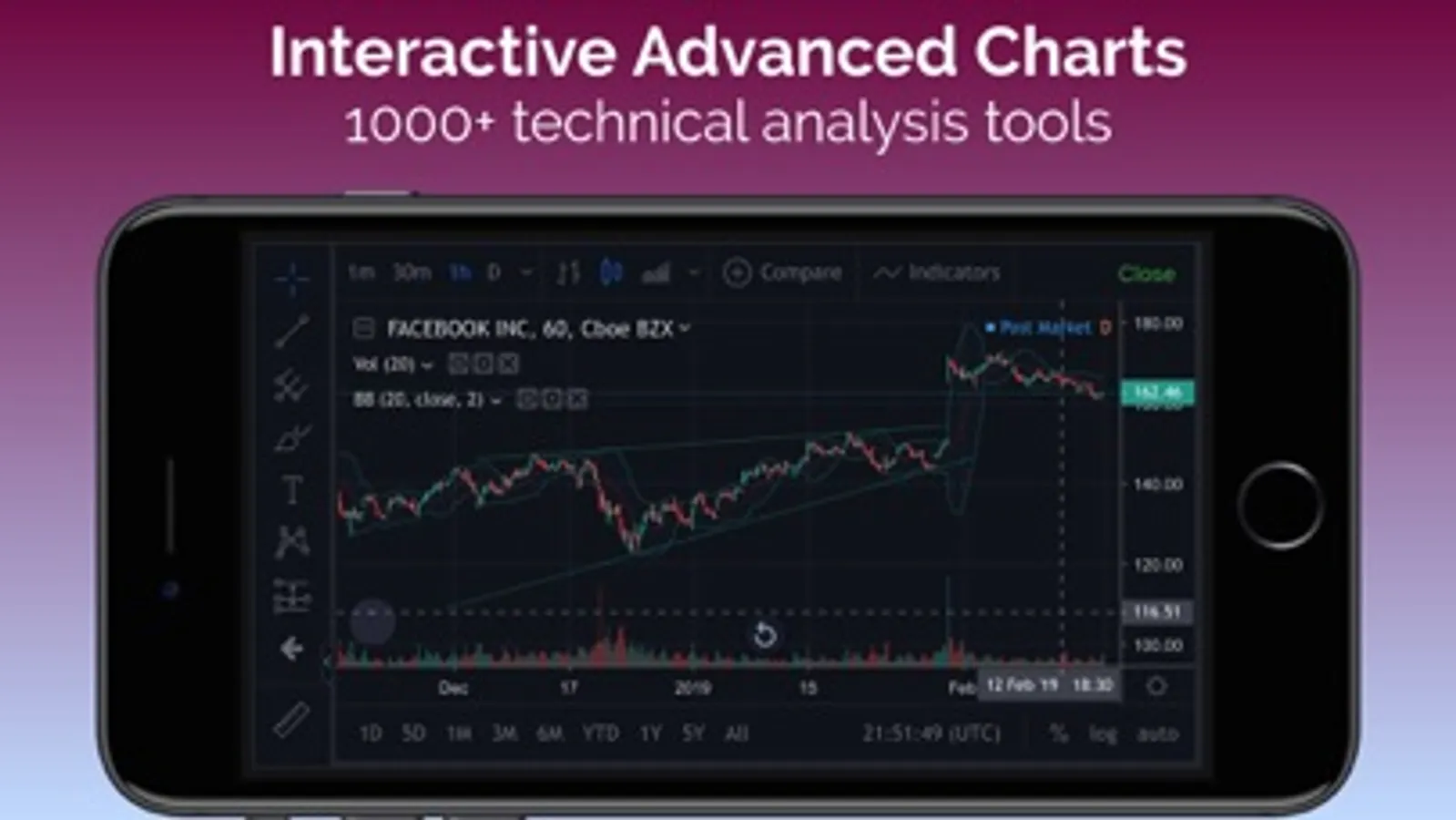 - Hundreds of Technical Indicators & Overlays: EMA, RSI, Bollinger Bands, etc