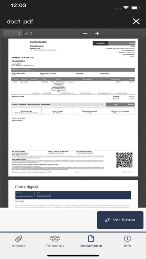 Mobile application of Literax platform that integrates Interfirma product for online signatures including: Electronic Signatures, Electronic Signatures Plus (soft token), and Digital Signatures (PKI based). All online signatures include an e seal according to NOM-151.