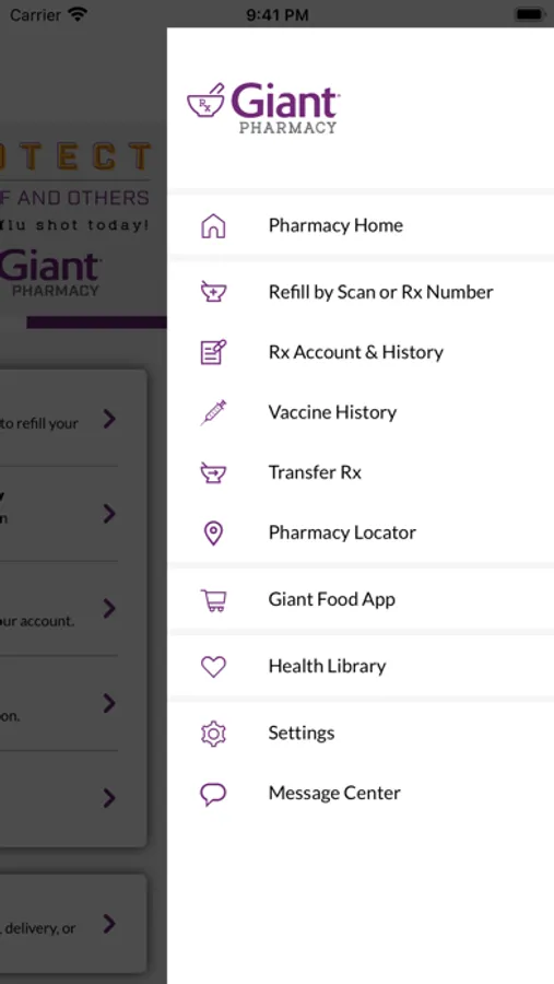 At Giant Pharmacy, we can fill your prescriptions for you, your family, and your pets while you shop. We make it easier to get your medicine, with automatic refills, easy prescription transfers, and a wide range of immunizations. Download the Giant Pharmacy app for additional rewards, health and wellness tips, and more in just a few taps!