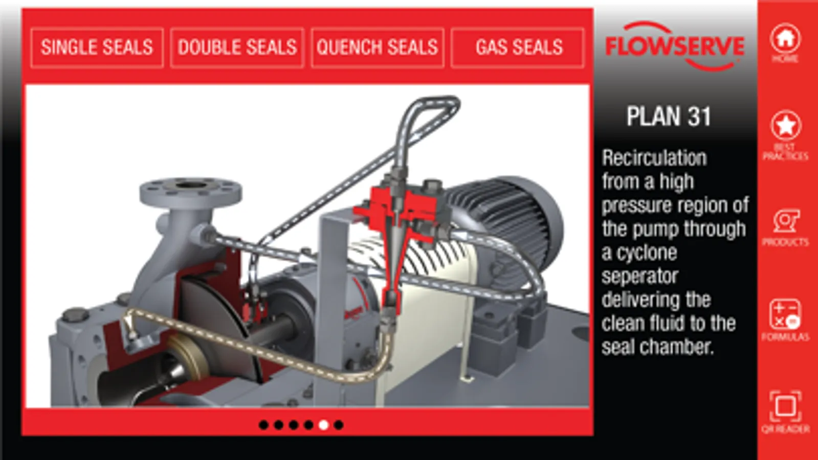 Flowserve recognizes one of the most effective ways to achieve long, uninterrupted mechanical seal life is to create a healthy environment around the seal faces. Piping plans help keep mechanical seals running cool and clean, promote safe handling of dangerous fluids, and extend the operational availability of rotating equipment. This app provides a concise summary of the most essential piping plans used successfully in today’s process plants. Each plan shows all the standard and optional auxiliary components referenced in ISO 21049 / API Standard 682 and recommended by Flowserve