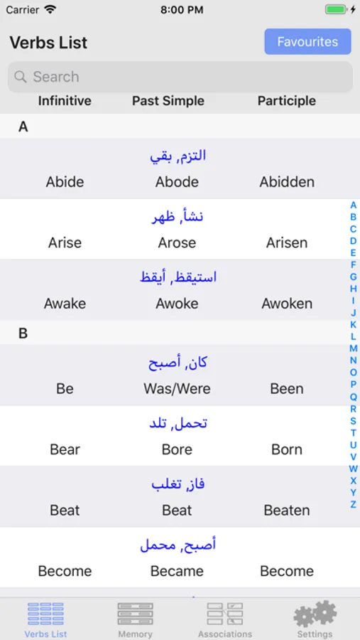 iVerbs بالإضافة إلى التطبيق للبحث السريع وعرض الأفعال الشاذة الإنجليزية.
