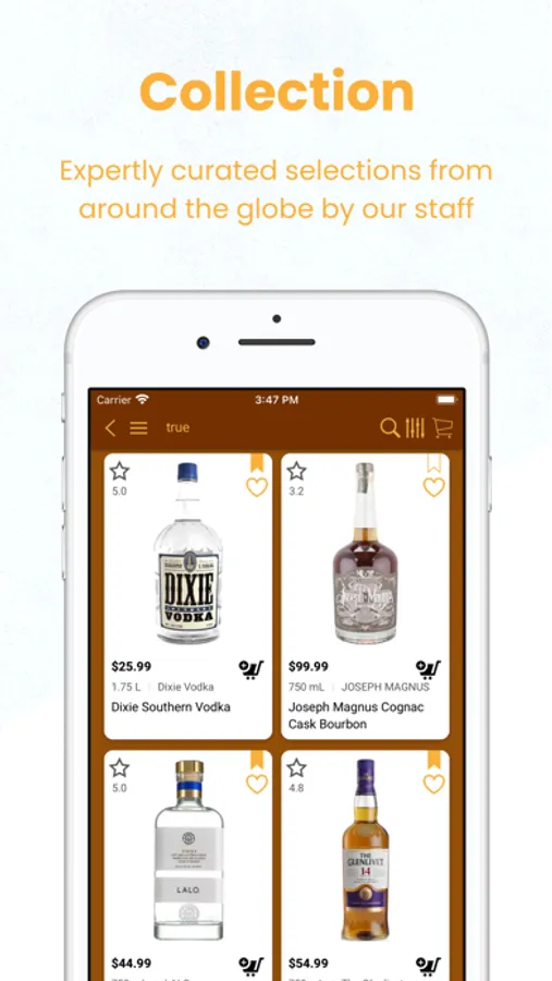 With the App you can browse for the wines & spirits available in the store, and also order a delivery or pickup.