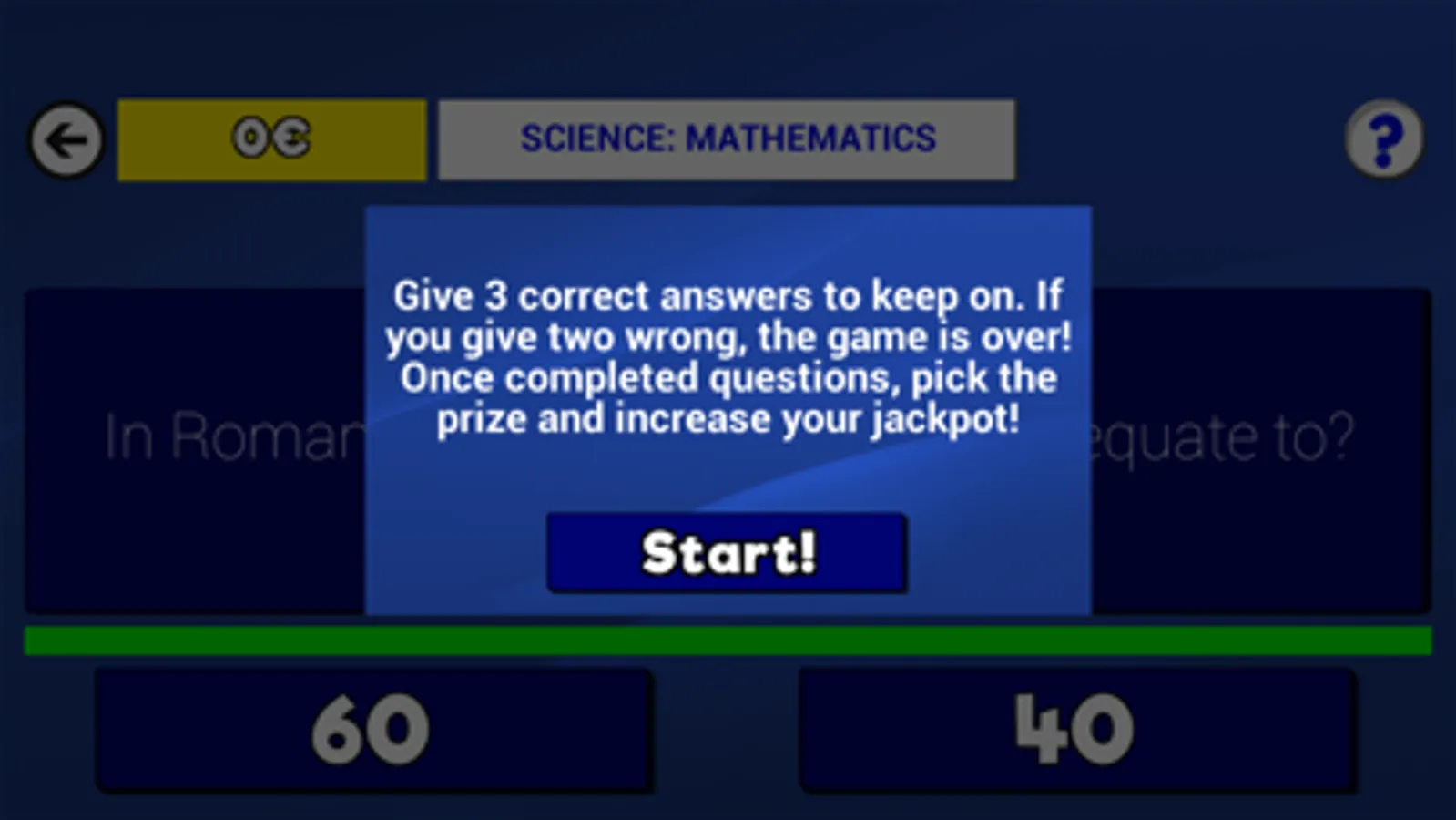 The first phase of the game is to correctly answer at least three out of four questions on a given topic, with the possibility of making only one mistake. At the second mistake you lose everything and end the game.Once you answer the questions you can draw a prize to increase your jackpot.
