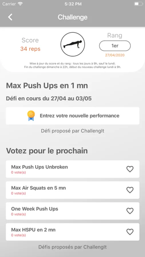 Chaque semaine un nouveau défi, qu’il soit proposé par votre box affiliée, votre réseau ou Challengit, ici c’est vous contre vous-même.