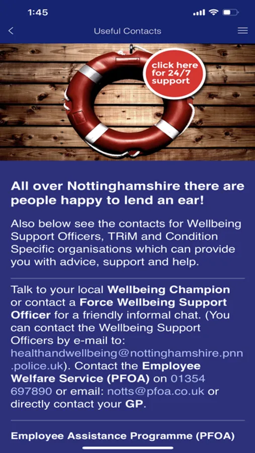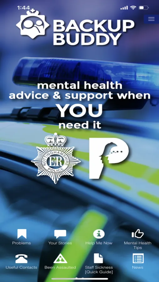 The Backup Buddy Police Support app is for police officers and staff in Nottinghamshire, designed to help with mental health issues.