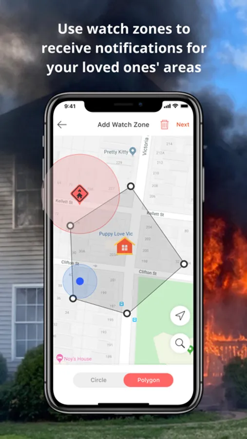 - Personalise alerts using watch zones to receive selected emergency notifications for your home or your loved ones' areas.