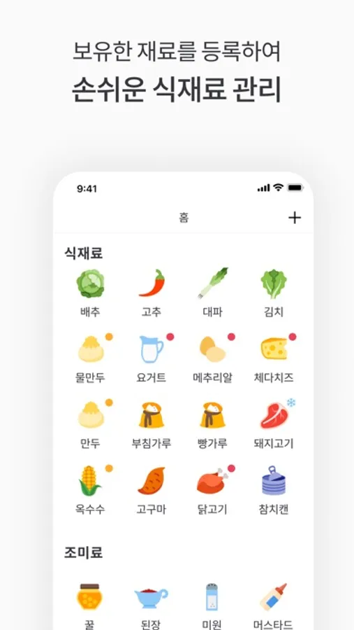 - 현재 보유한 식재료를 한 눈에 확인할 수 있어요.