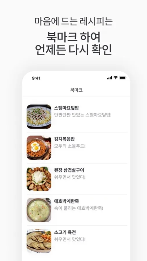- 요리를 할 예정이거나, 좋아하는 레시피는 북마크를 해서 쉽게 찾을 수 있어요.