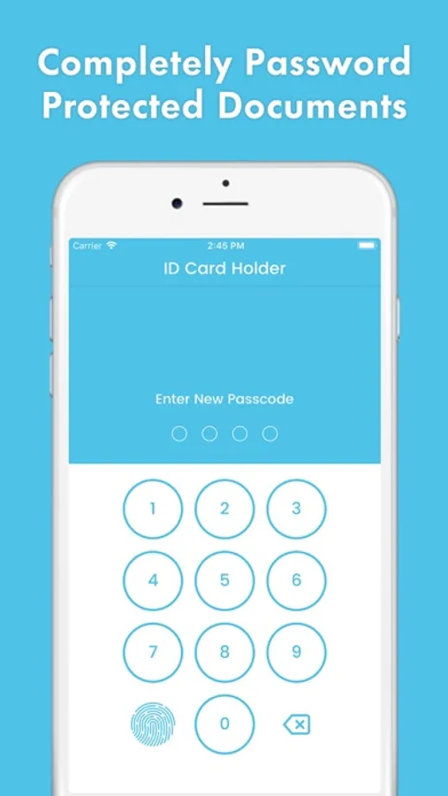 - Secure your proof and documents of (credit cards, government ids and debit cards) with your Pass code