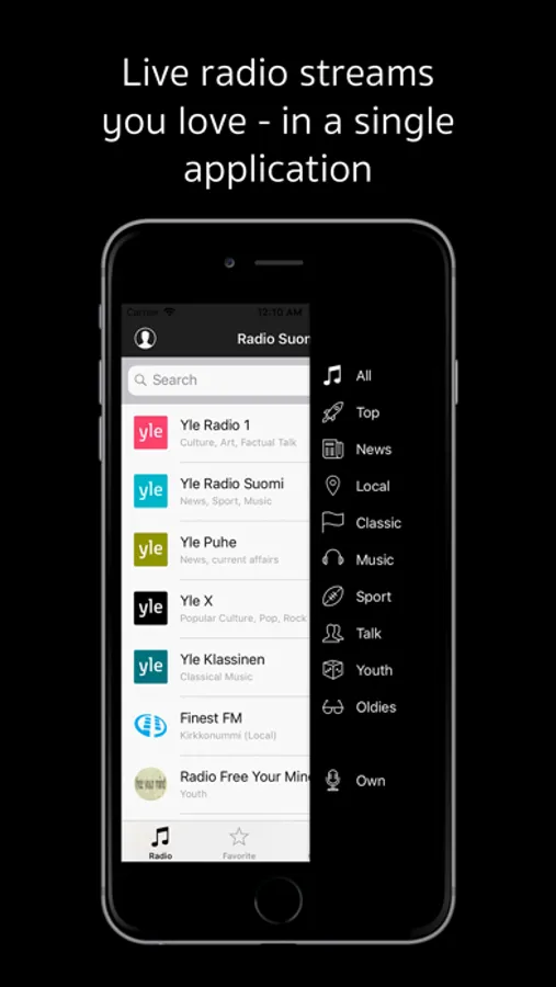 With Radio Suomi, you can easily listen to live streaming of news, music, sports, talks, shows and other programs of Finland. Radio Suomi offers tremendous depth and breadth of stations with genres ranging from Alternative, Electronica, Metal to Jazz and Classic across a broad set of languages including Italian, Spanish, French, German, Russian and Portuguese. At the same time, application has public radio, talks about business and analytics.