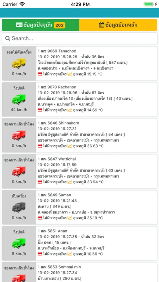 - เรียกดูข้อมูลย้อนหลังของรถแต่ละคันในช่วงเวลาที่ต้องการ
