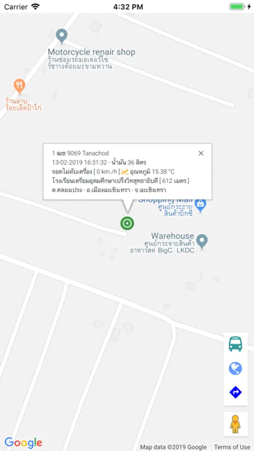 - ติดตามตำแหน่ง GPS และแสดงผลข้อมูลสถานะปัจจุบันของรถแต่ละคัน
