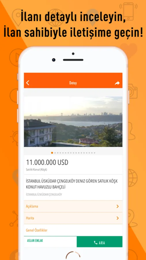 Emlakbuluyoruz.com uygulamasının farklılıklarından birisi de; sunduğu emlak ilanlarının, bölgenin coğrafi ve kültürel özelliklerini taşımasıdır. Akdeniz bölgesinde narenciye ağaçlı bahçe tipinde bir arazi ilanını inceleyebilirken öte yandan Güneydoğu Anadolu bölgesinde fıstık ağaçlı arazileri görüntüleyebilirsiniz. Türkiye’nin denize sahili olan kentlerinde yazlık ev konut tipinde ilanlarını, iç kesimlerde ise bağ evi konut tipindeki ilanlarını listeleyebilirsiniz.