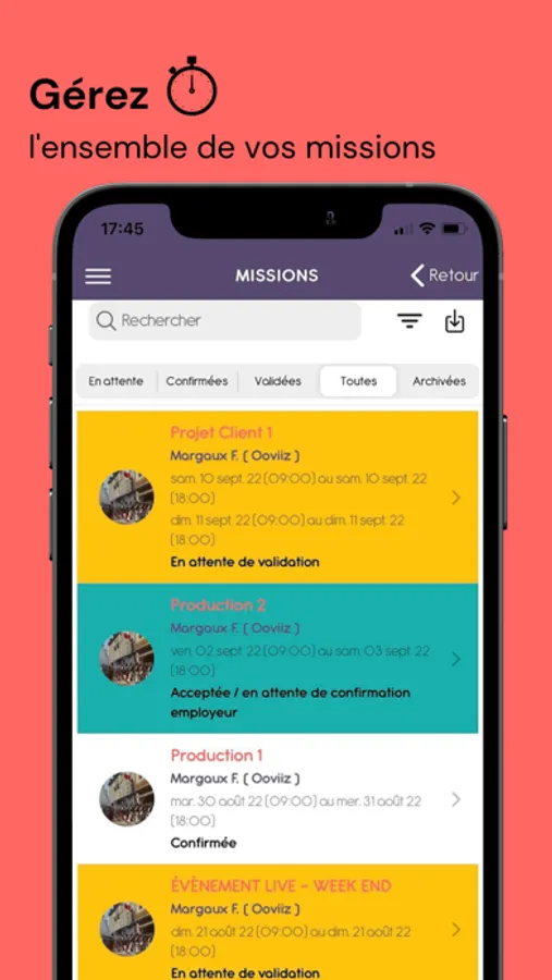 Immediately receive missions offers on your mobile thanks to notifications.