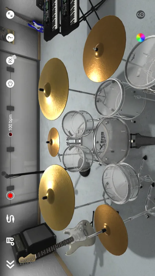 A real 3D drum kit and a double keyboard in a Garage scene.
