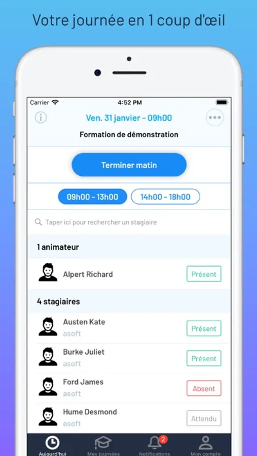 • Signez numériquement sur tablette et smartphone la présence des stagiaires ou apprenants. Terminé les feuilles de présence papier !