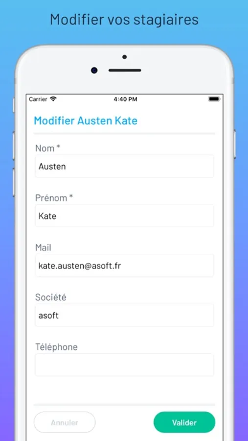 • Modification des informations stagiaires (ajout, remplacement, coordonnées à corriger…).