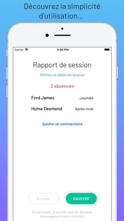 • Utilisation simple et efficace, pas plus de 5 clics pour démarrer et terminer un émargement.