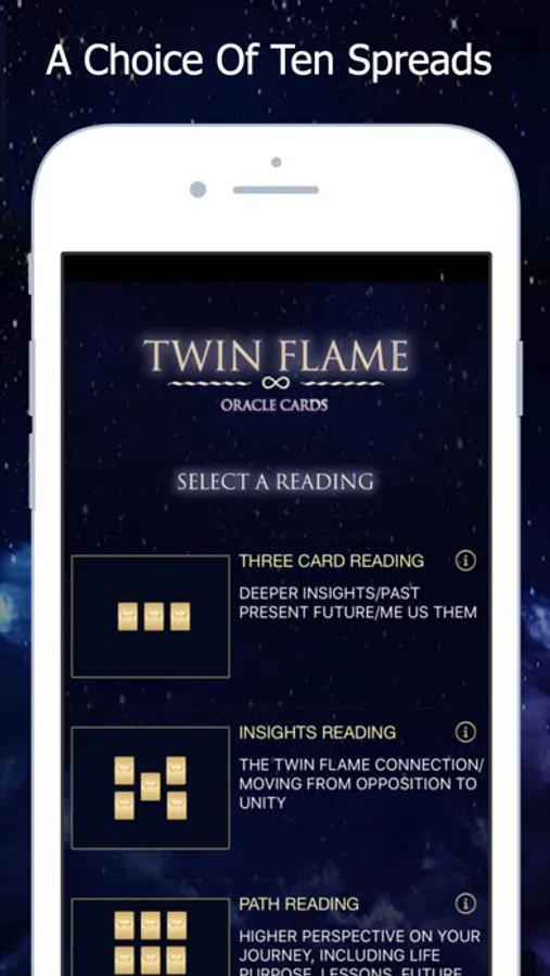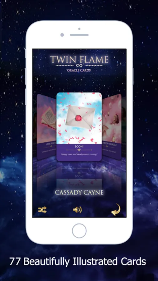 Created by Cassady Cayne The Twin Flame Oracle Card app now contains 82 cards with in depth high vibrational, on-point messages and beautiful imagery to give you advice, feedback and instant answers you need right now, no matter where you are on your Twin Flame journey.