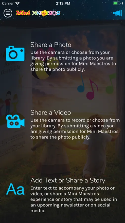• Share feature. Where customers can directly share a photo, video or text with Mini Maestros to share on social or the newsletter
