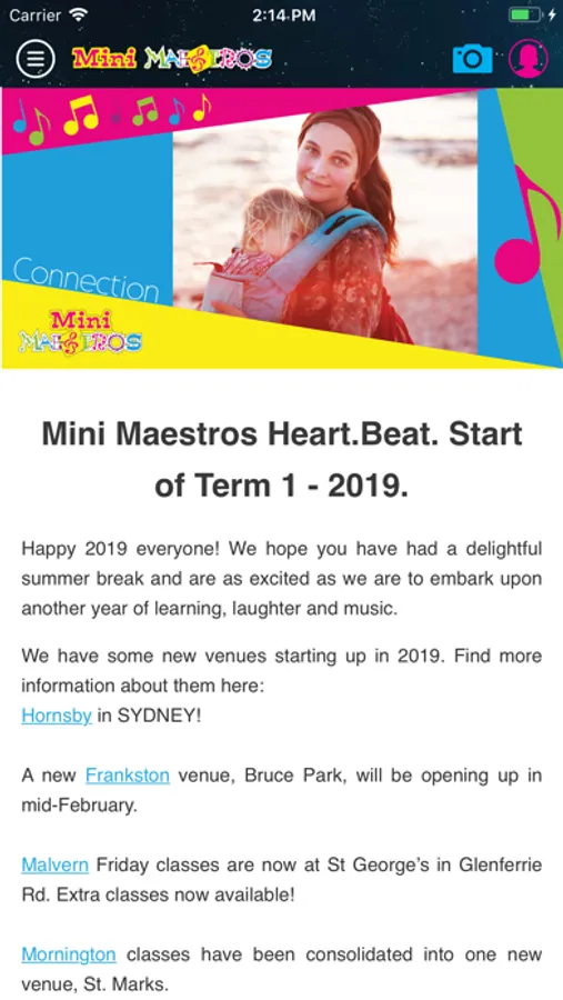 The Mini Maestros Customer App is a complimentary app for parents with children enrolled in Mini Maestros classes in Australia.