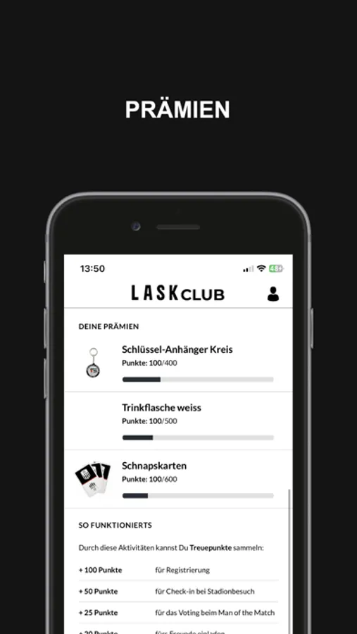 Die LASK-App ist dein digitales Treueprogramm! Du kannst ganz einfach durch unterschiedliche Aktivitäten Punkte sammeln und diese gegen tolle Prämien einlösen.